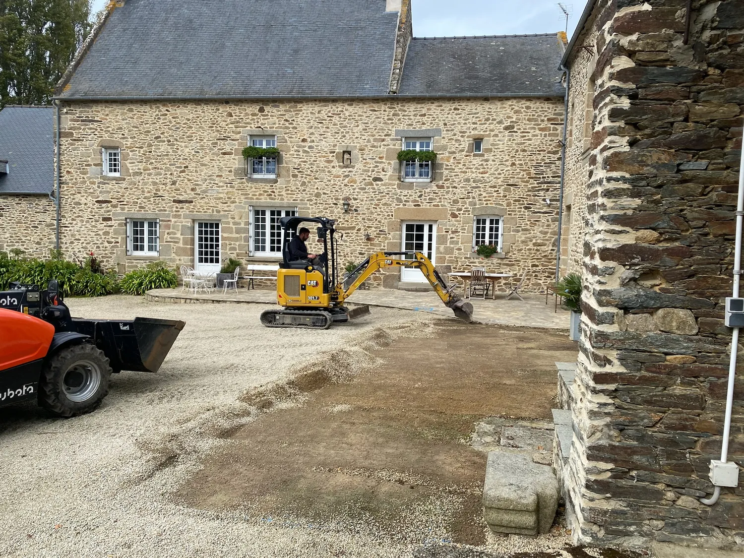 Avant tout projet de construction ou d’aménagement extérieur, la préparation du terrain est une phase indispensable. Elle comprend le décaissement, le nivellement et la mise en forme du sol afin de garantir la stabilité et la durabilité des ouvrages à venir.